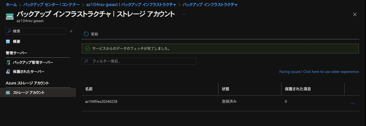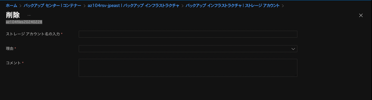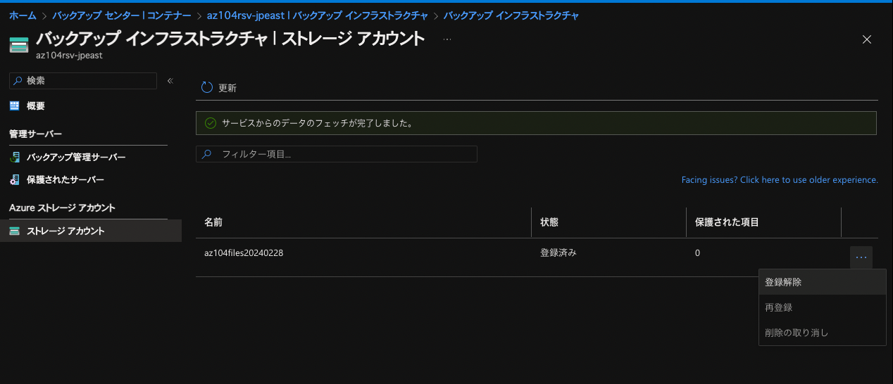 ここにバックアップ対象となるストレージアカウントとの紐付けがありました。これも削除する必要があります。