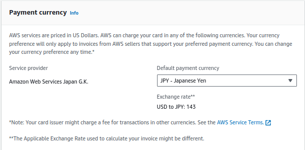 カード登録のページで、支払い為替を決められますが、ドル建てで払うより、円で払ったほうが少しだけお得?なのかもしれません。(VISAのレートと比較した場合、少し安い)