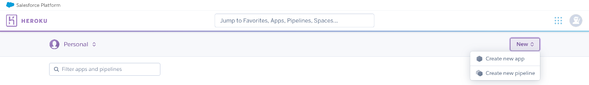 ホーム画面?( https://dashboard.heroku.com/apps )の右上の「New」のプルダウンから「Create new app」をクリック。