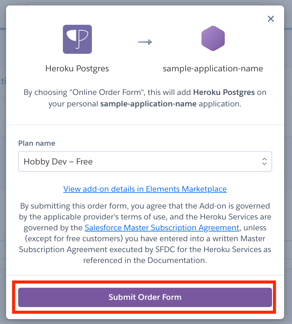 このようなモーダルが出てくるのでそのまま「Submit Order Form」をクリック。