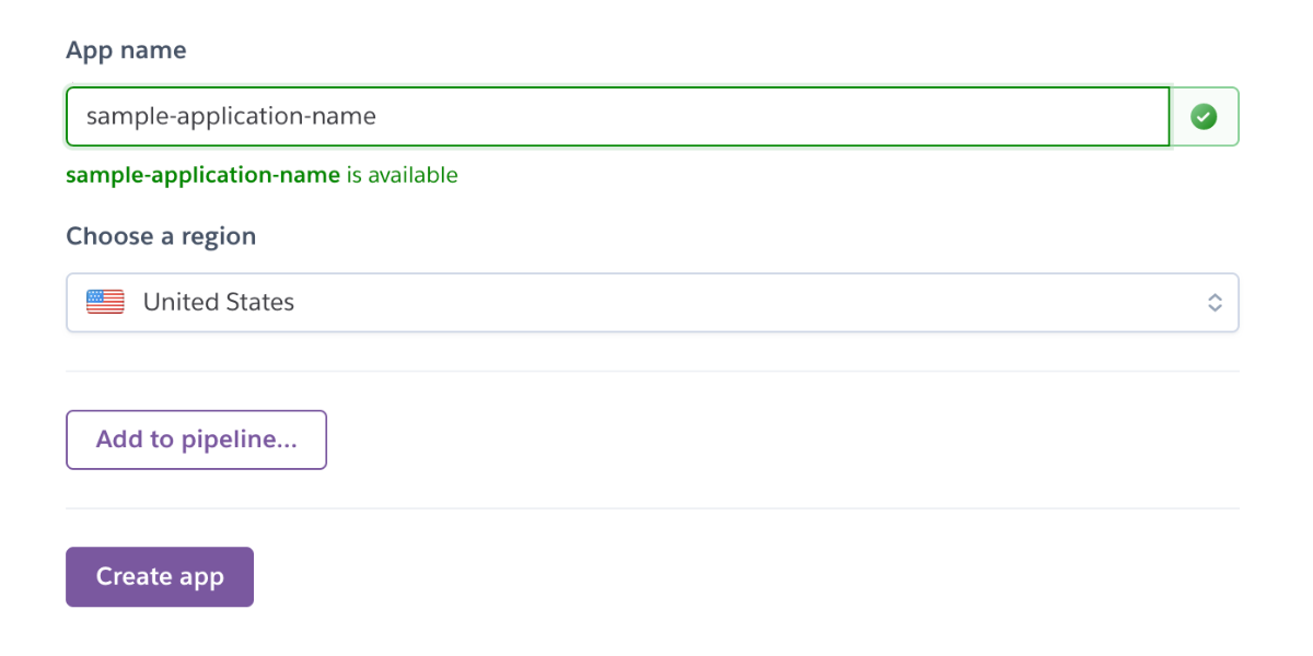 お好きなアプリケーションの名前を入力し、「○○ is available」と表示されたのを確認して、「Create app」をクリック。