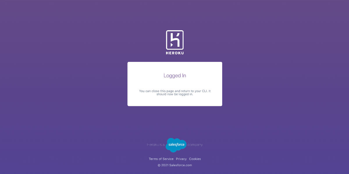上記の「heroku: Press any key to open up the browser to login or q to exit: