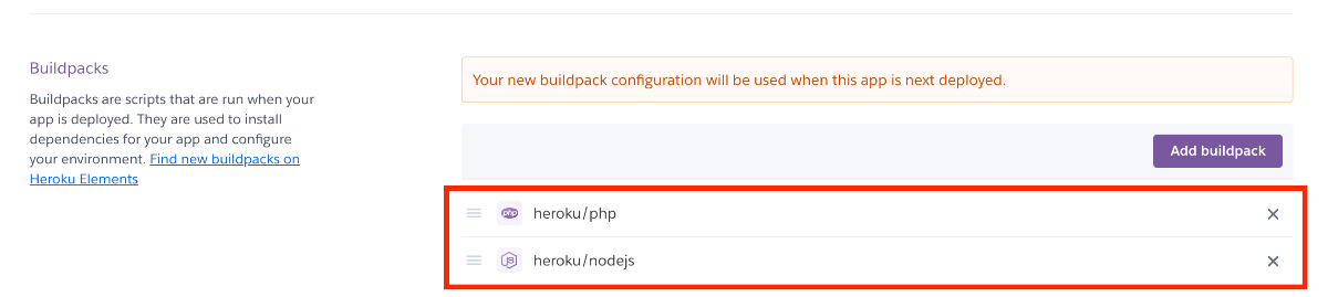 (1回の追加で複数のBuild Packを追加できないので、2回に分けてください)