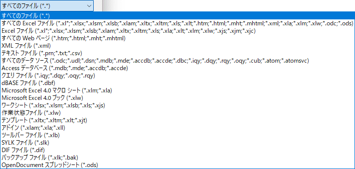フィルターの選択状態については名前を付けて保存ダイアログと同様です。