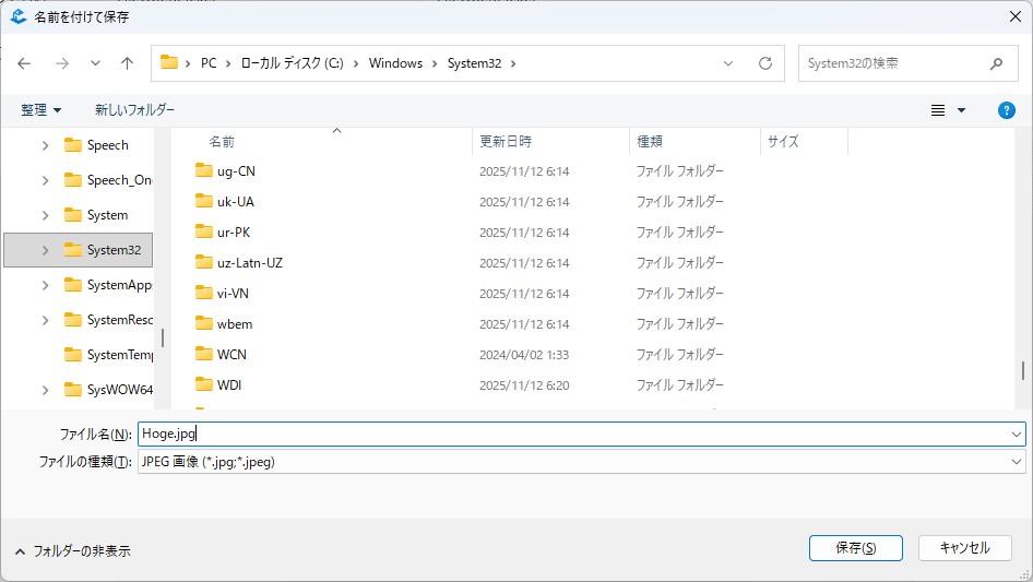 ファイルを開くダイアログより簡単な、名前を付けて保存ダイアログについて先に見ていきます。