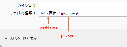 | pszName | フィルターの説明。 | "JPEG 画像" |