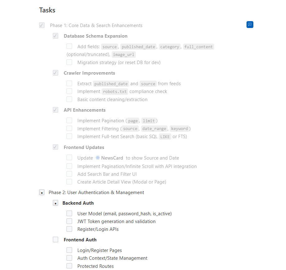 2. ドキュメントが必要な場合は、コード実装タスク内で完結させる