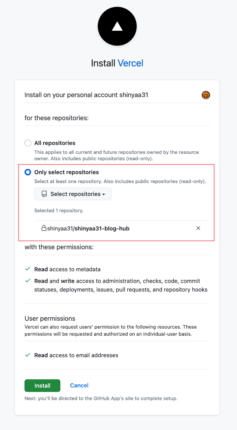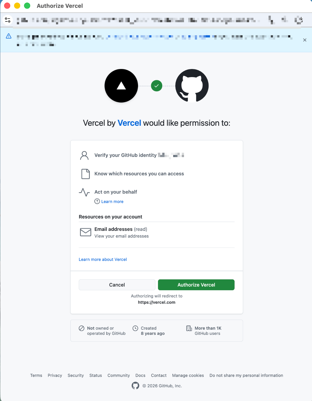 - VercelアカウントとGitHubリポジトリの連携設定を進めます。