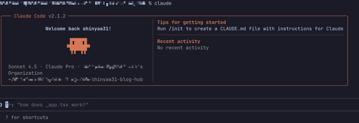 gitリポジトリ配下でclaudeコマンドを実行し、会話しながらやりたいことを進めていきます。