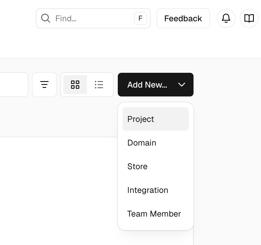 Vercelログイン後、画面メニュー(左上)ボタンより[Add New...]→[Project]を選択。