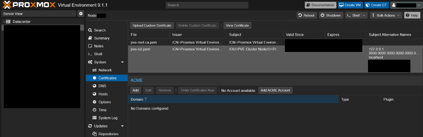 というわけでProxmox VEのKVM上にVMを用意して,Proxmox Datacenter Managerにインストールすることにしました。