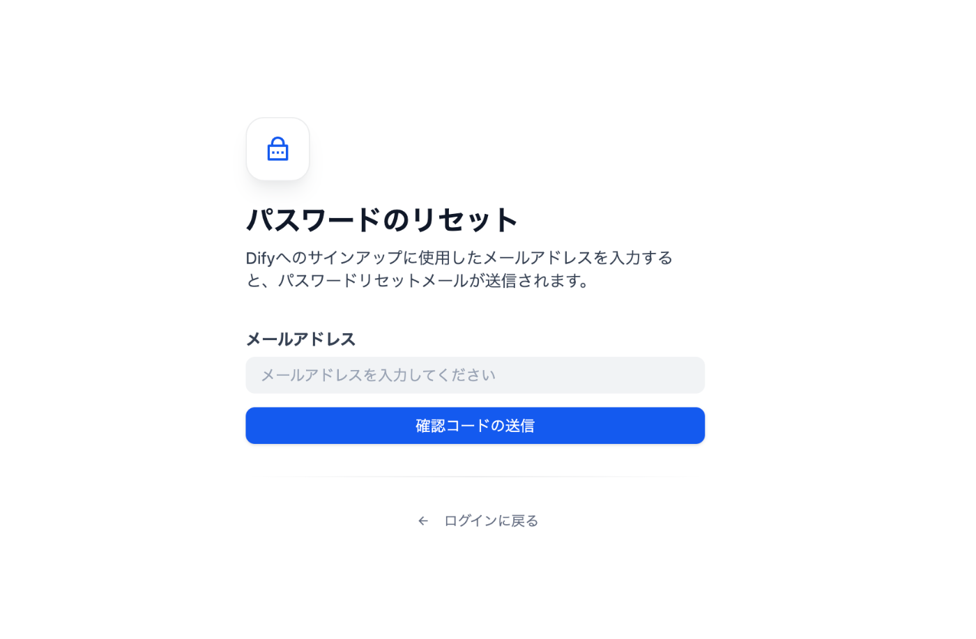 一般的にはDifyの管理者アカウントのパスワードを忘れた場合は、ログイン画面にあるパスワードリセットを行えばよいです。