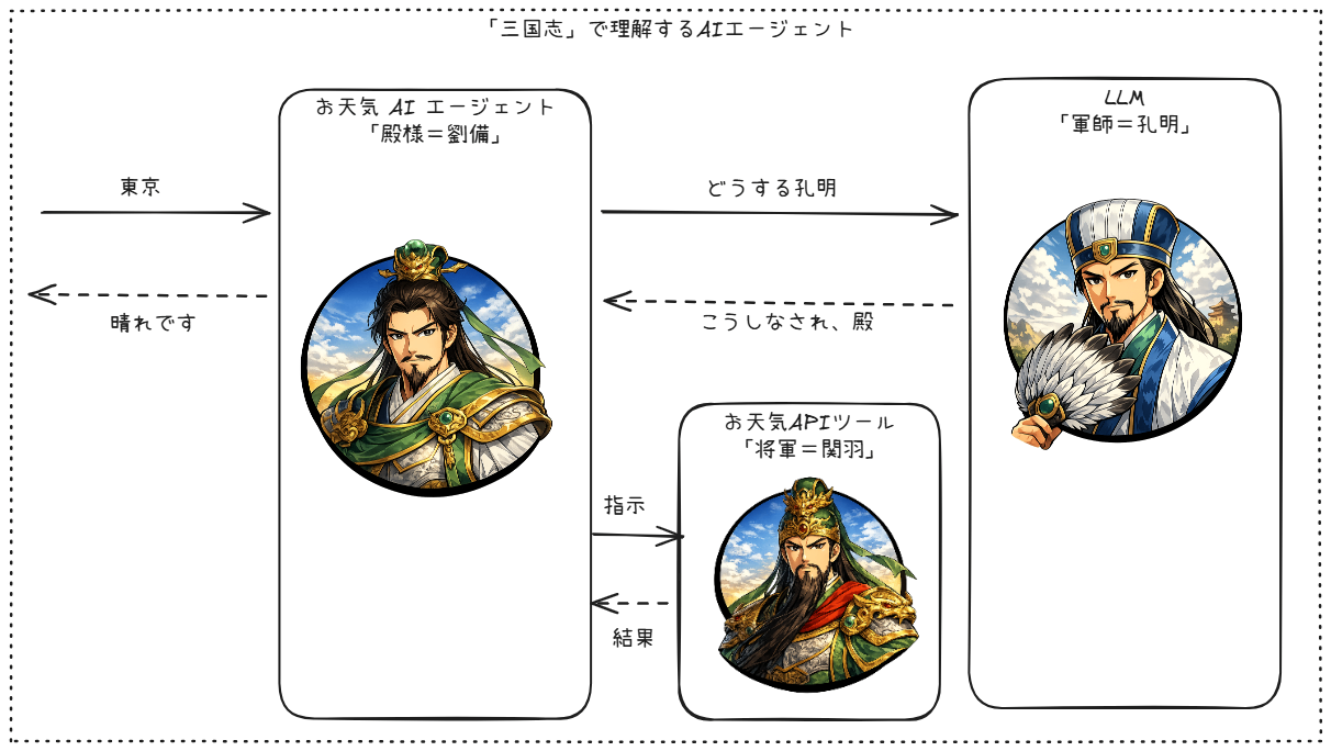 Mastra で作るAI エージェント(1) はじめてのAIエージェント という記事の中で、AIエージェントを三国志の世界観で説明しましたので、該当部分だけ抽出してご紹介します。