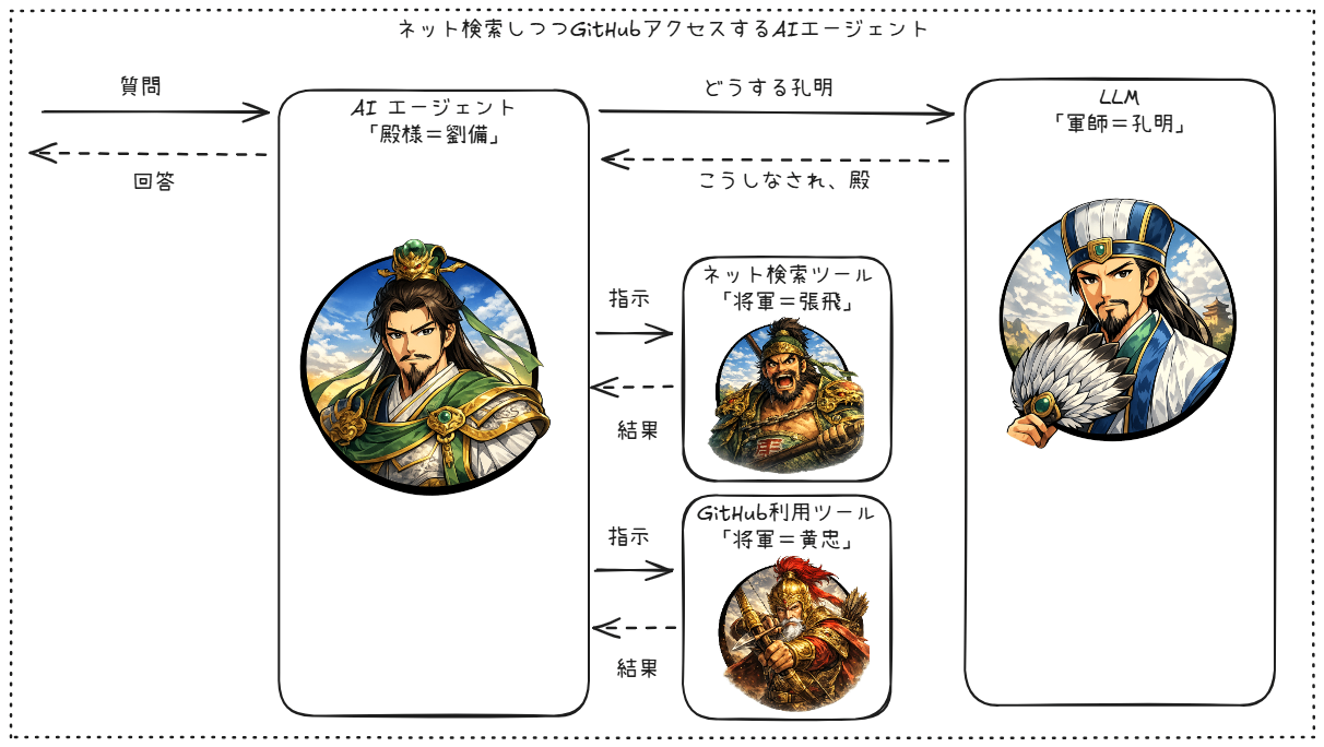 前回は、AIエージェントの構成を「三国志」になぞらえて以下のように把握しました。