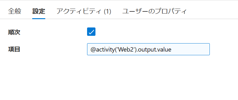 こちらのStepでは、Step2で取得したSPOのファイルリストの内容を取得して、内部でコピー処理するためのアクティビティを用意します。ここは一番シンプルで、設定する内容は次の1つのみで注意点も特にないかと思います。