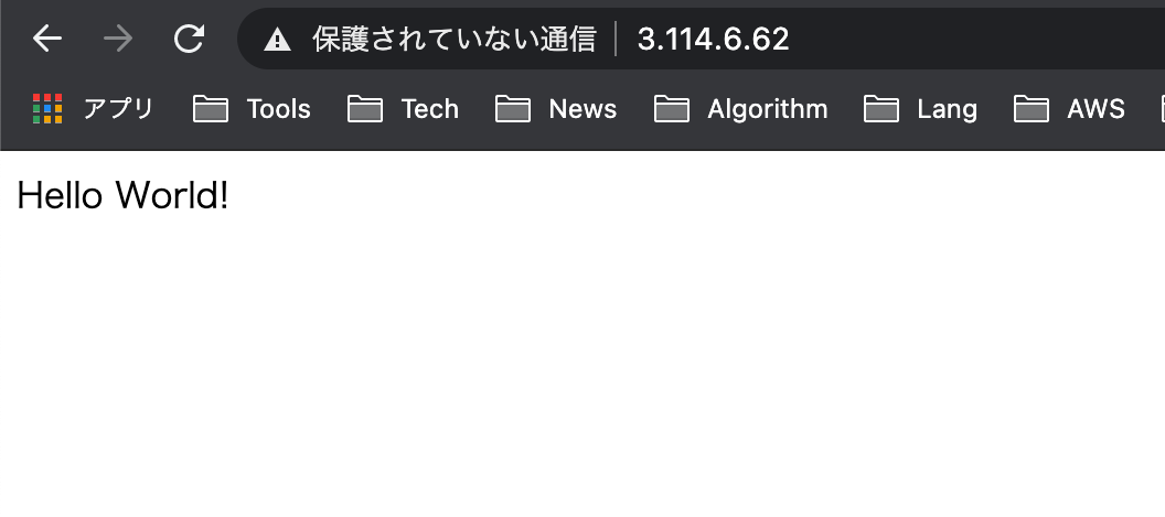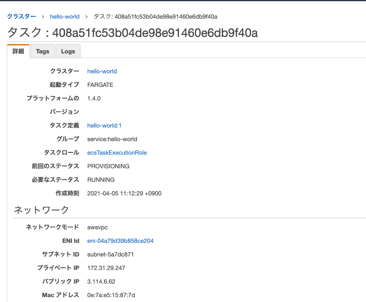 ■以下の記事を参考に、上記で作ったECRイメージをサービスとしてデプロイ実施し、Hello worldされることを確認。