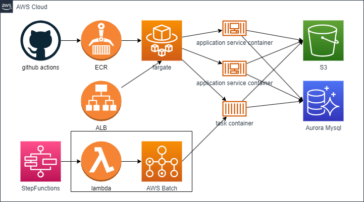 - PHP + Aurora Mysql + コンテナ内のコマンドラインツール(バッチ用途)