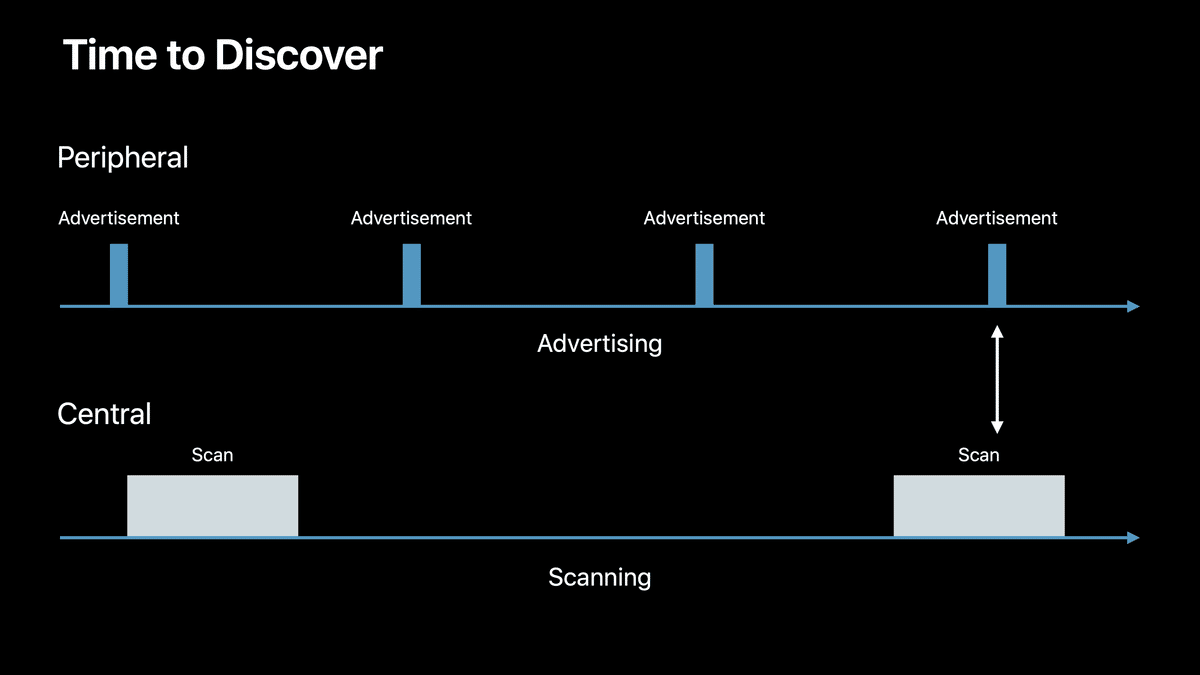 That ensures that no matter what state your central is in, whether it's screen on, screen off, directly in the app, in the background, it will get you the shortest time to find.
