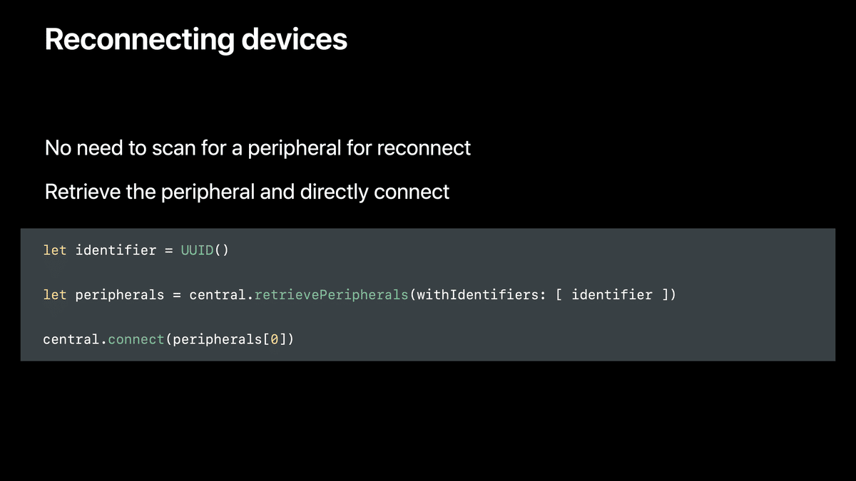 が、Core Bluetoothのようなニッチなフレームワークにとっては、昔のWWDCの発表であれ、それが唯一の一次情報だったりするので、非常に貴重です。