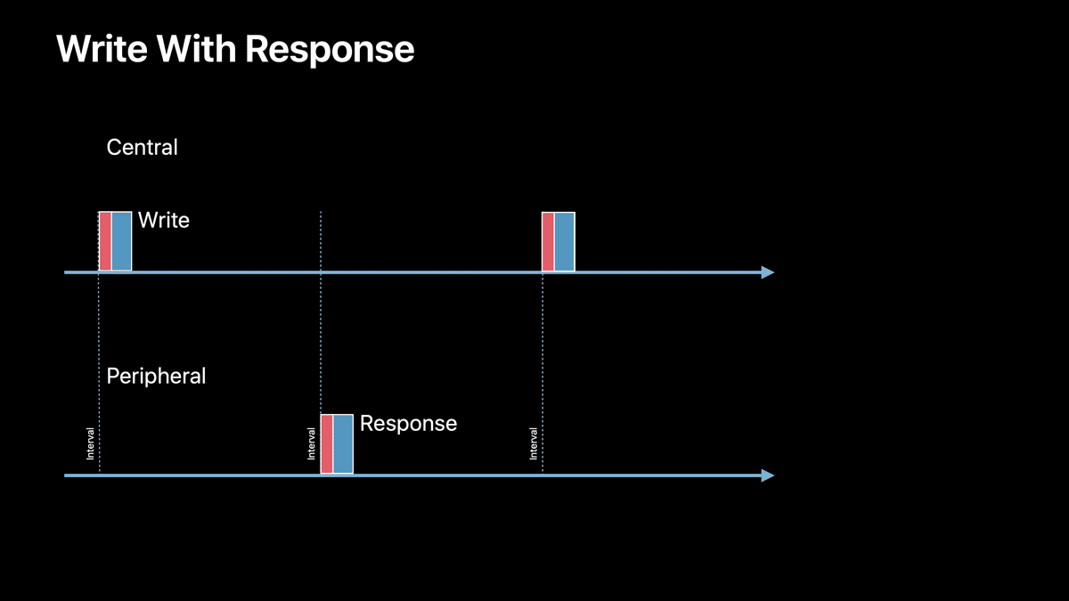 2つ目の問題は、GATTでは以前、確実に書き込むにはWrite With Responseを使うしかなかったことであり、書き込みとレスポンスの待ち時間の2つの間隔を要することです。
