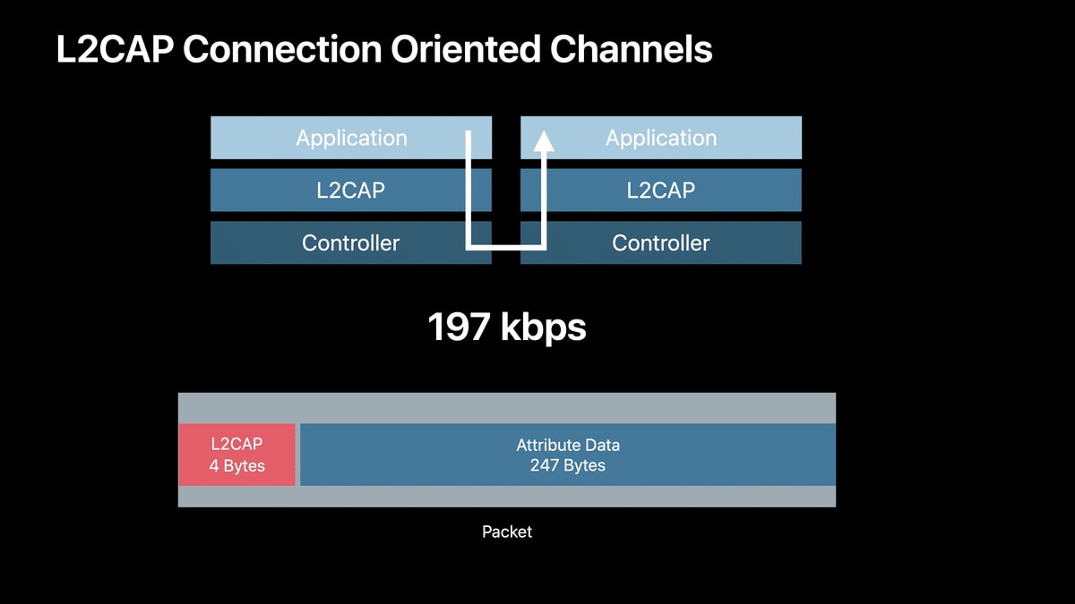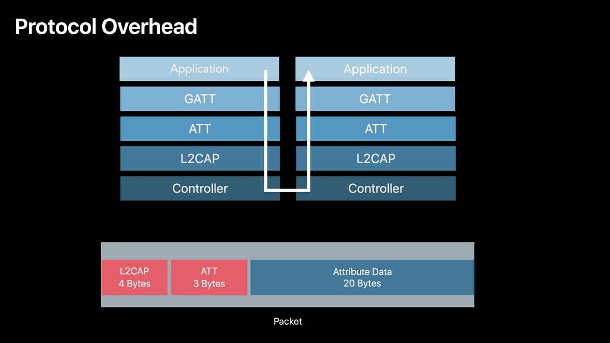 This will eliminate all of the overhead previously in GATT and ATTs, but more importantly it eliminates limitations and restriction in GATT like the maximum attribute size of 512, so we can now write much larger values and use much larger MTU.