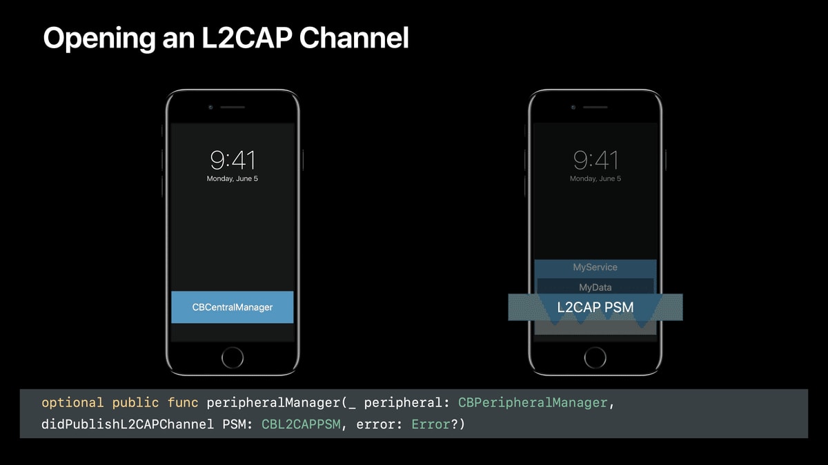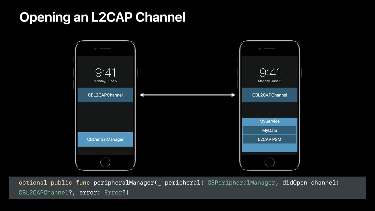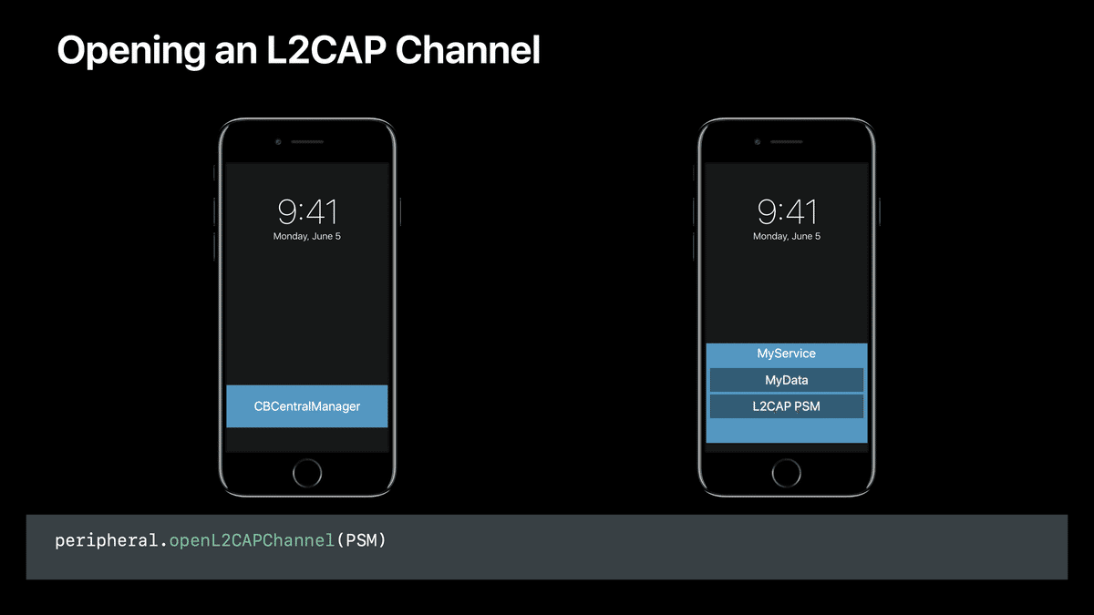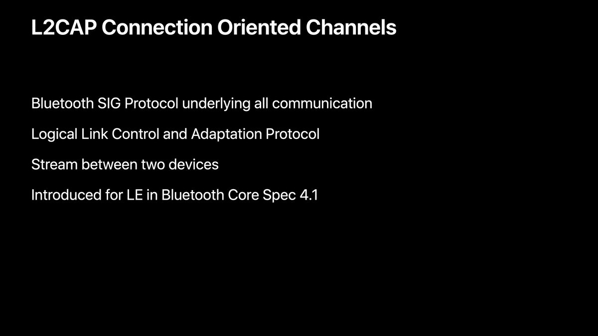 本記事ではこれらを統合し、WWDC17の同セッションの中でも特に重要だと感じた「L2CAP channels」パートの内容をまとめます。