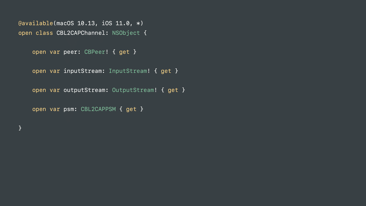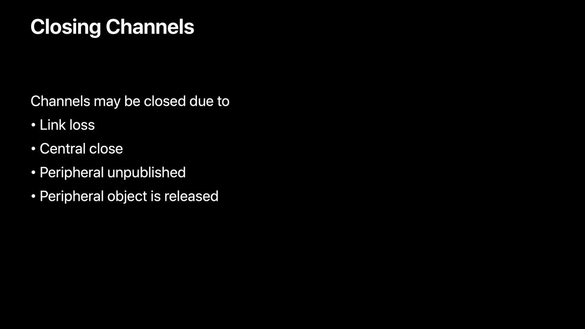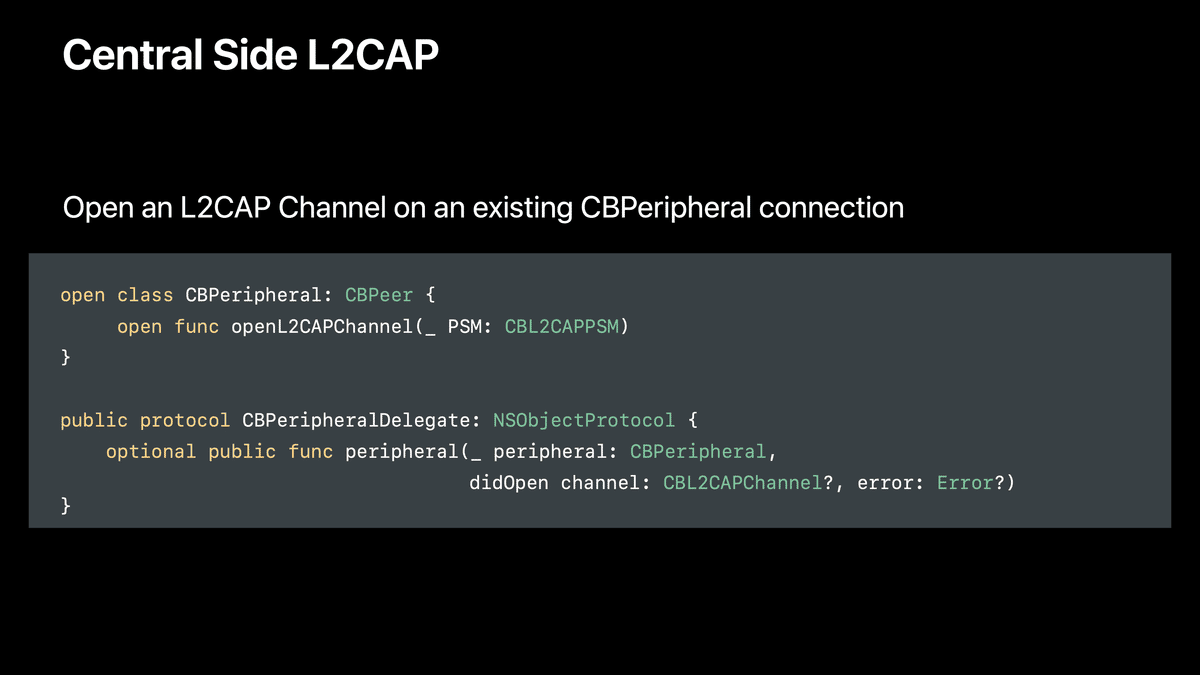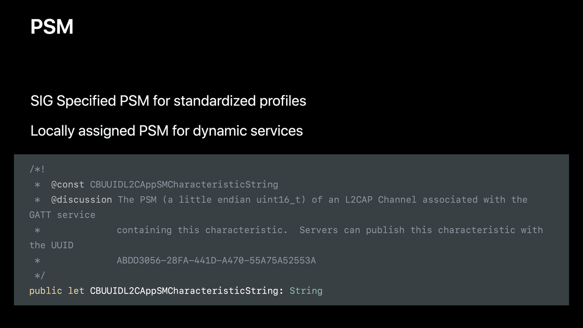 本記事ではこれらを統合し、WWDC17の同セッションの中でも特に重要だと感じた「L2CAP channels」パートの内容をまとめます。
