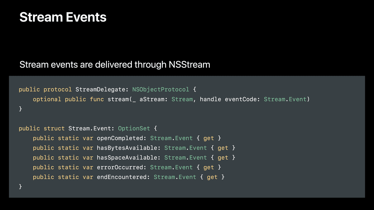 So we use all the same stream events that you would get off of, say, a socket after you're connected, and there's bytes available to be read.