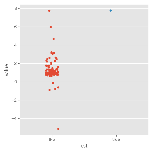 推定量は比較的簡単に計算することができる IPS 推定量を試してみる。IPS 推定量は以下で表される。