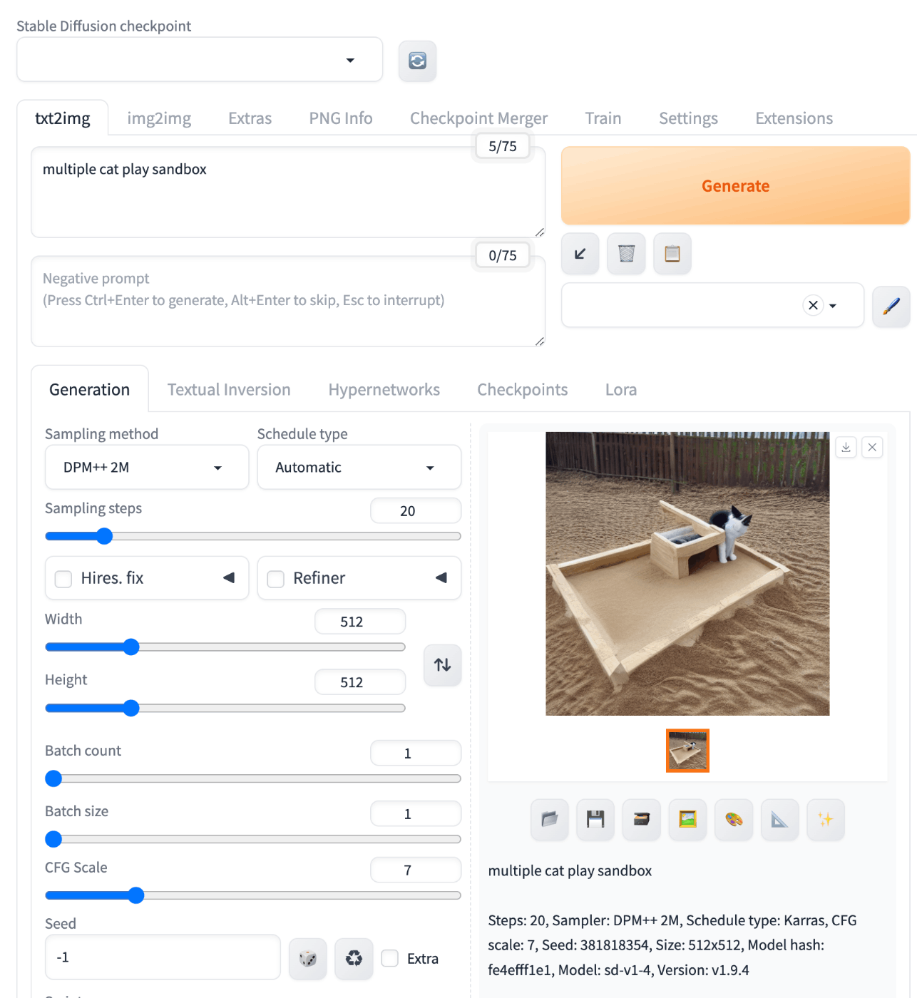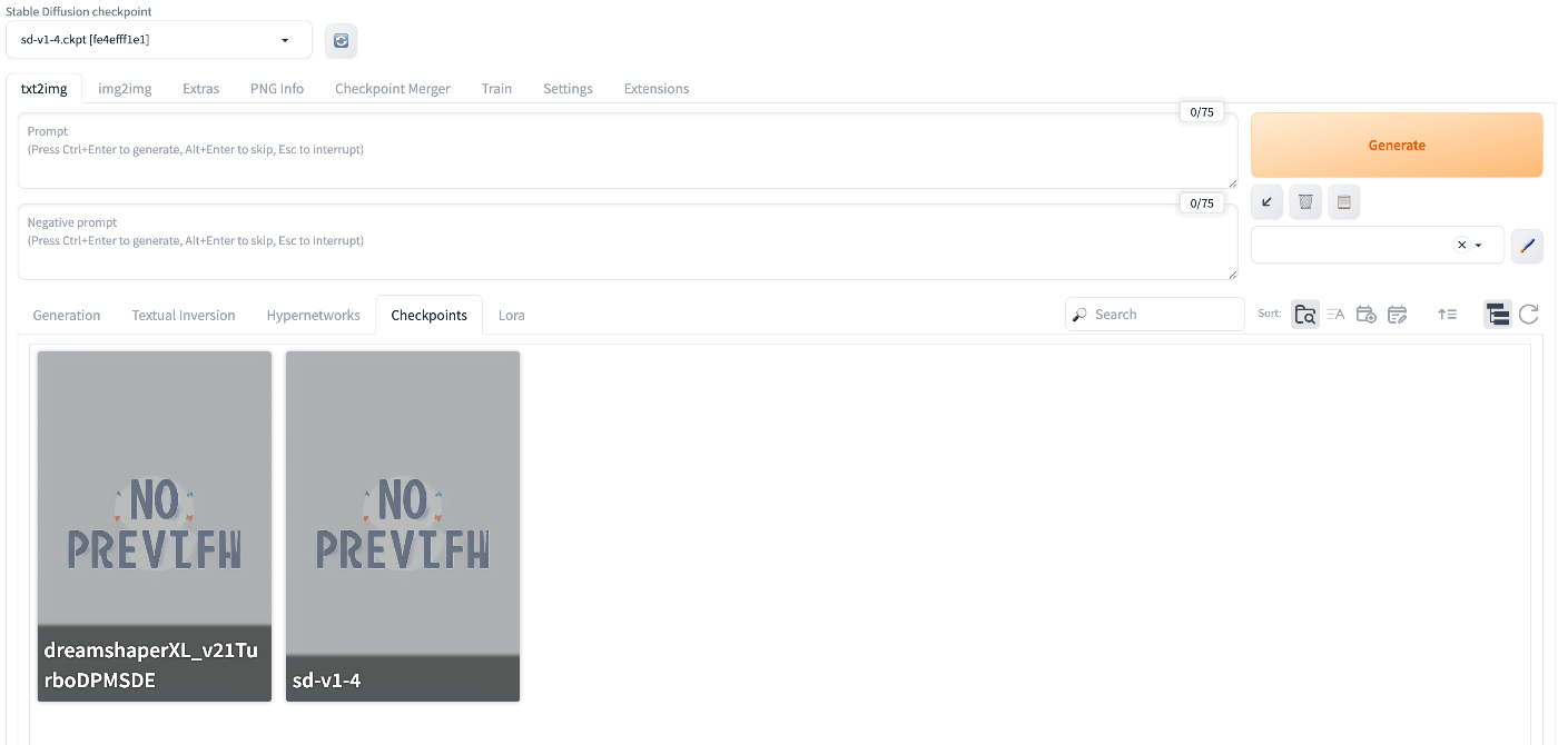 - checkpointが大本の方向性を決めるモデル ( /models/Stable-diffusion )