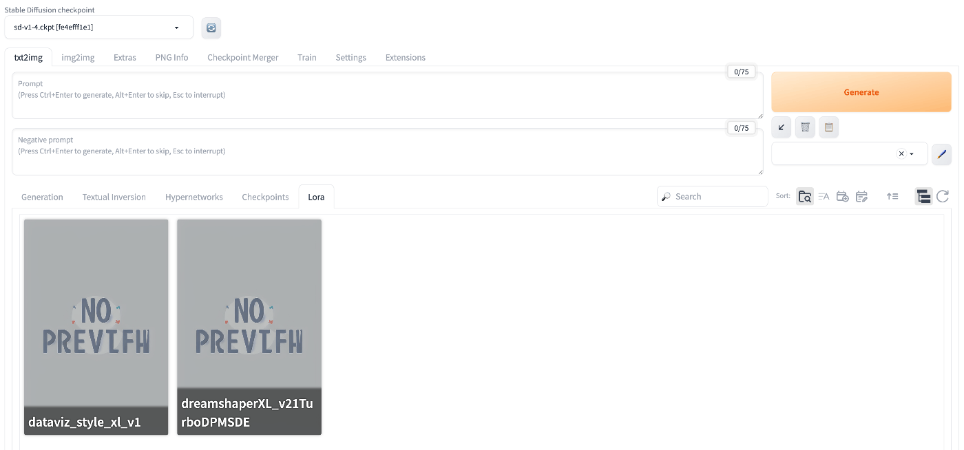 stable diffusion web ui自体は動いた。Loraをcivitaiから拾ってきたいのでそちらを進める。