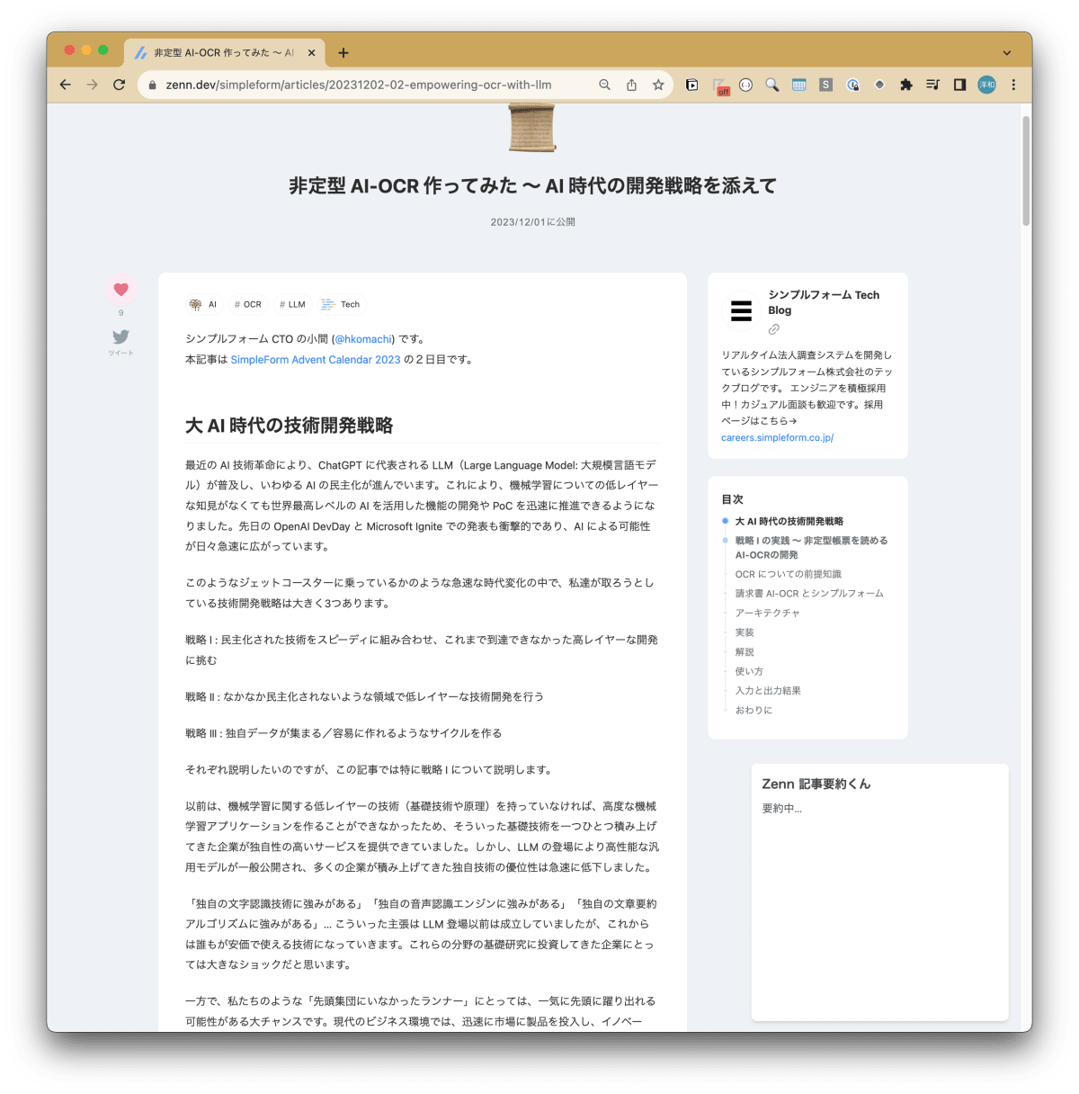 シンプルフォーム CTO の小間 (@hkomachi) です。