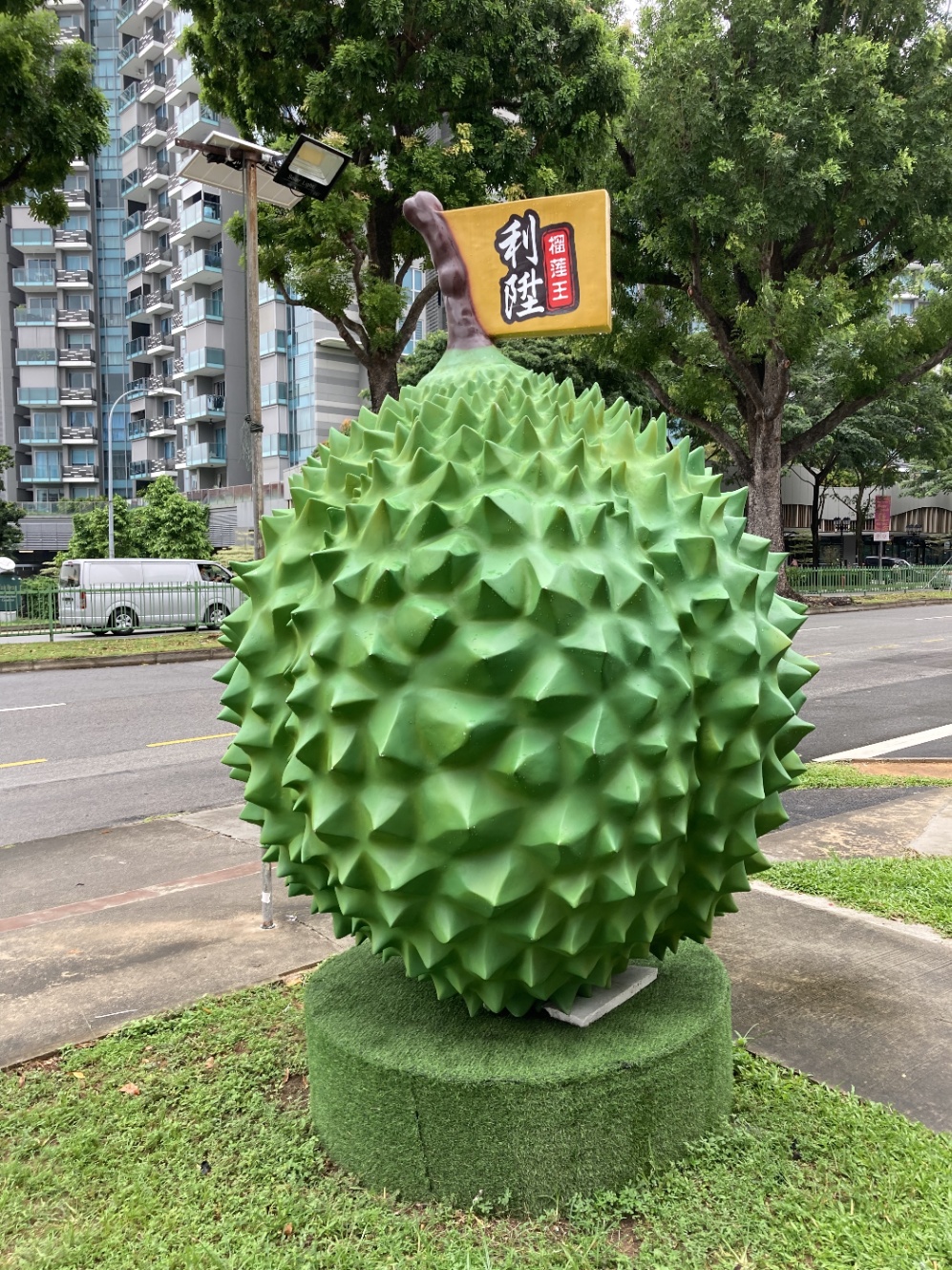 大きなドリアンだ!どこにあるんだろう?? フラグの形式は TsukuCTF23{緯度_経度} です。例えば、この像が東京の渋谷駅にある場合、フラグは TsukuCTF23{35.6580_139.7016} となります。