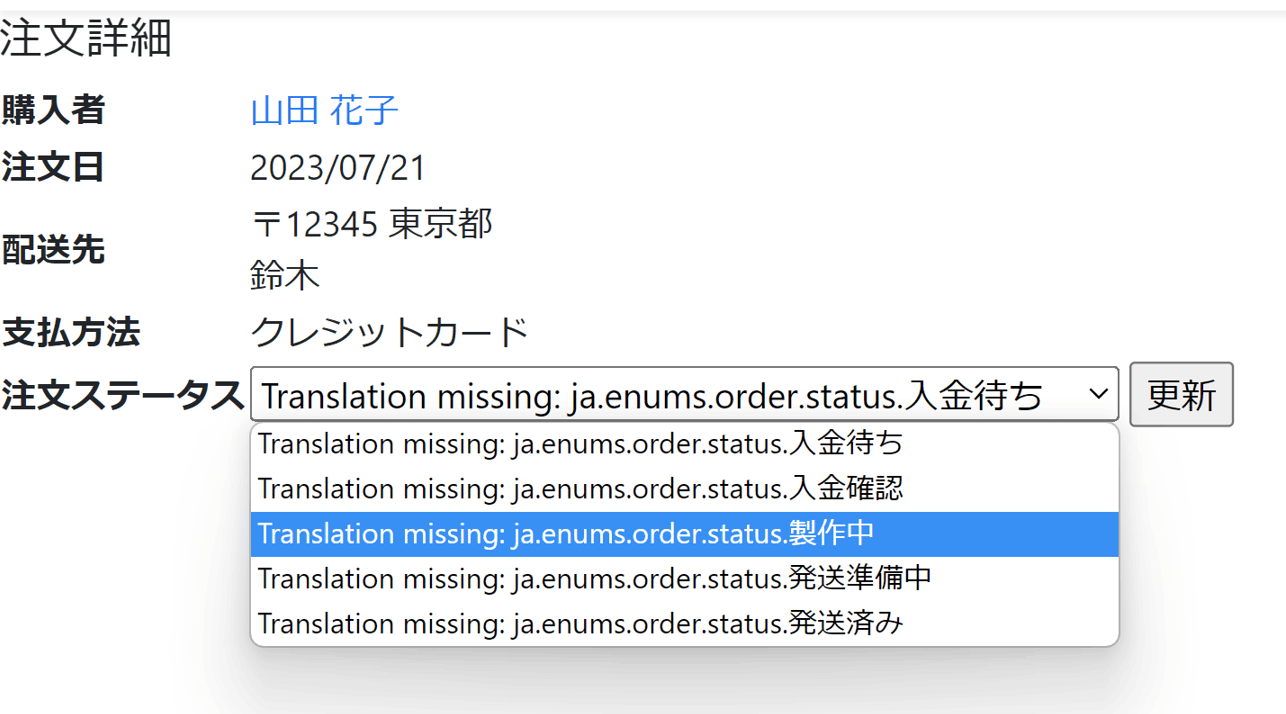 enum status: { 入金待ち: 0, 入金確認: 1, 製作中: 2, 発送準備中: 3, 発送済み: 4 }