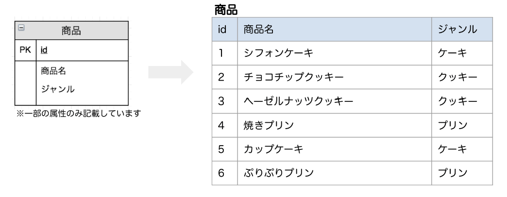 商品テーブルとは別にジャンルテーブルを作成することで上記で上げた問題点をすべて改善することができる。
