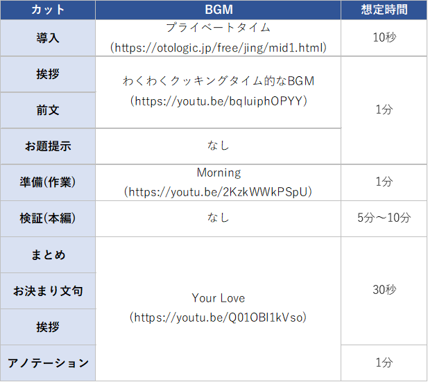 普段見てるチャンネルから構成がまとまってるなーってやつを参考に組み立て。