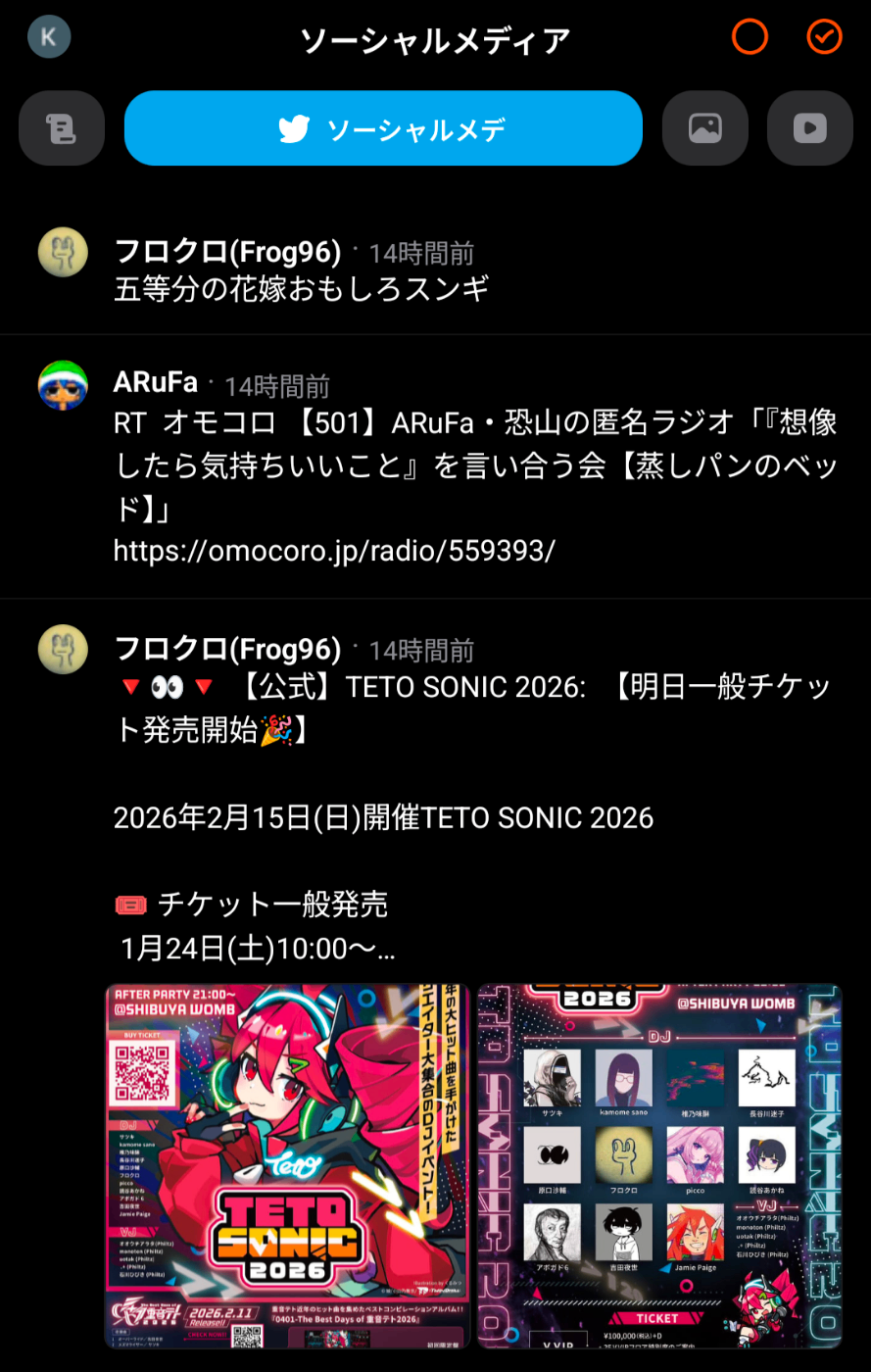 これにより、テキストや画像、動画を自動で検知してTwitterのタイムライン風に表示できます。