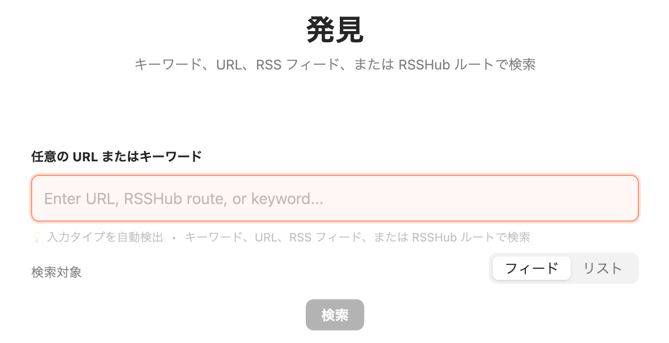 検索欄にフィードのURLをそのまま貼り付けてください。