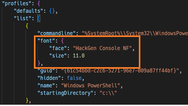 Windowsターミナルのフォント設定変更