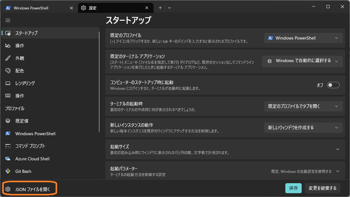 JSONファイルを開く(settings.json)