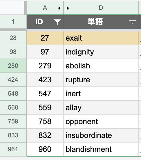 私は語学の勉強が好きで、なるべく効率よく弱点が克服出来るように、学んだ単語のうち、苦手なものをスプレッドシートにまとめて管理したりしています。