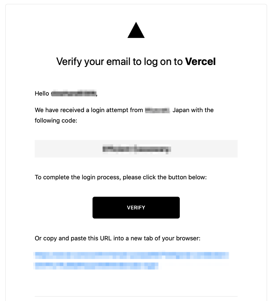 ↓届いた確認メール (メール内のコードと一致している事を確認してVerifyする)