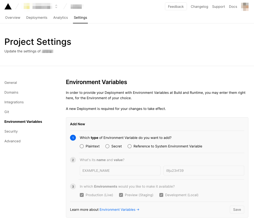 Vercel側で環境変数を設定する