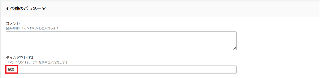 - コマンドの実行画面で下記の設定値を入力し、実行をクリックします。