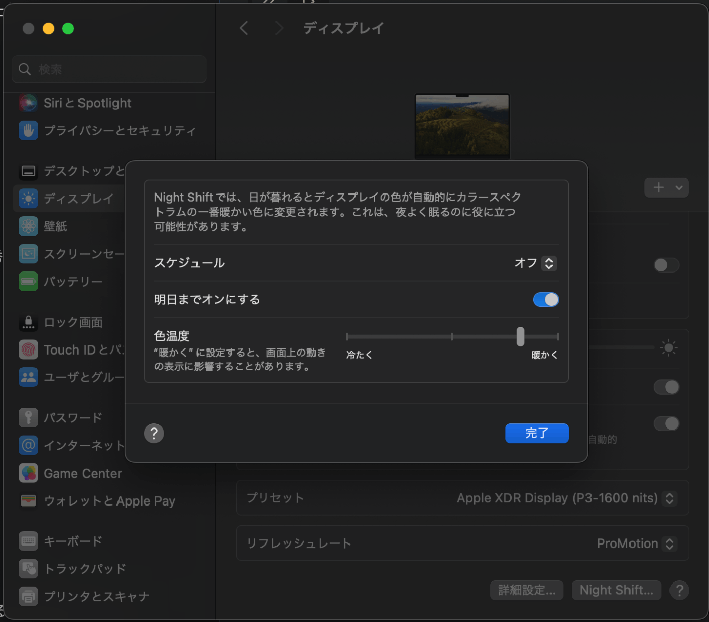 - NightShiftは全員ONにしたほうが良い。目の疲れ方が違います。黄色い画面はすぐ慣れます。