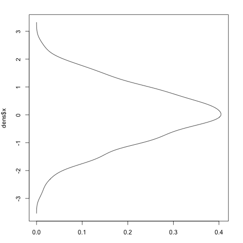 plot(dens$y, dens$x, type = "l", xlim = c(-0.4, 1.4))