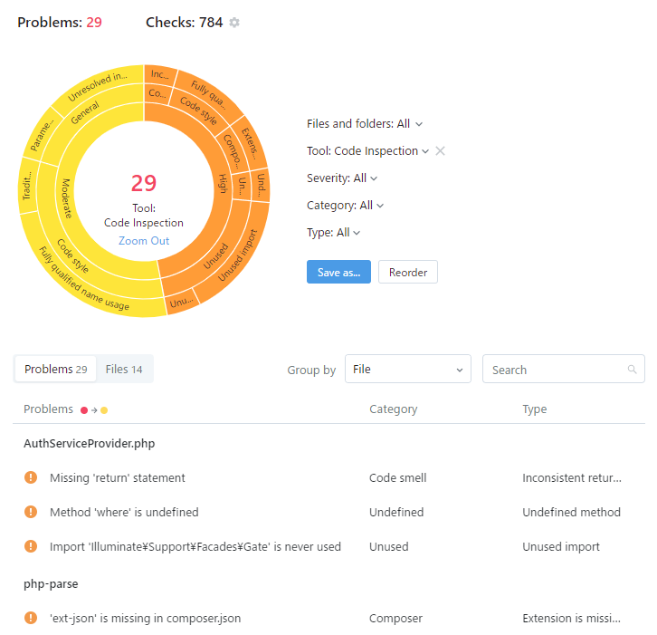 Qodana is a code quality monitoring tool that identifies and suggests fixes for bugs, security vulnerabilities, duplications, and imperfections. Qodana already supports PHP, Java, and Kotlin projects, and will eventually support all languages and technologies covered by JetBrains IDEs.