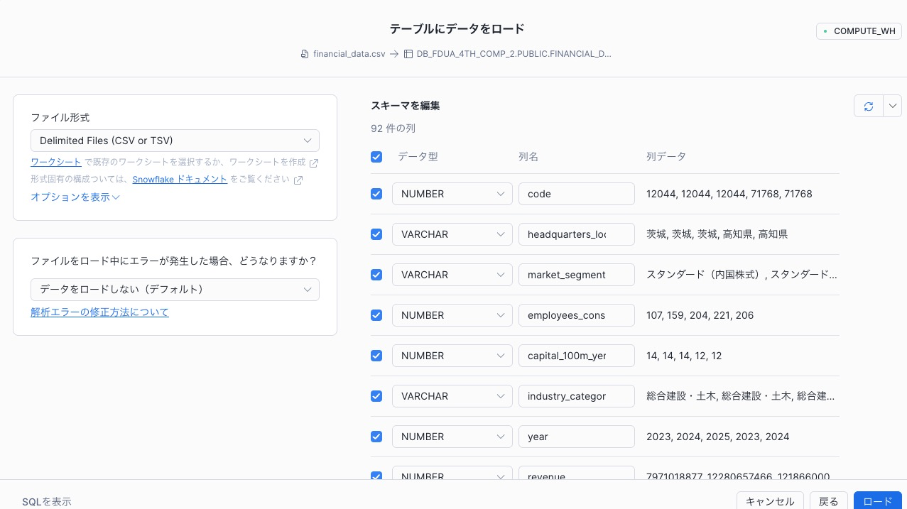 (金融庁共催)第4回金融データ活用チャレンジのデータを分析できるようにSnowflakeへアップロードする方法を説明します。