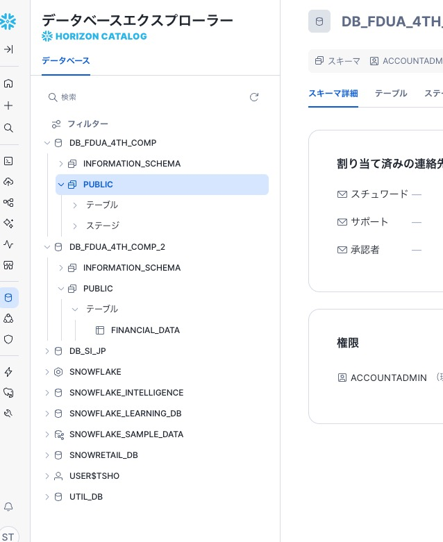 左の DB_FDUA_4TH_COMP をクリックし、PUBLIC をクリックするとこのような画面になります。