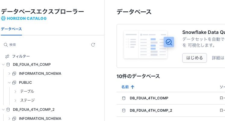 すると、下記のような画面になります。ここでさきほど作った"DB_FDUA_4TH_COMP"を確認できます。